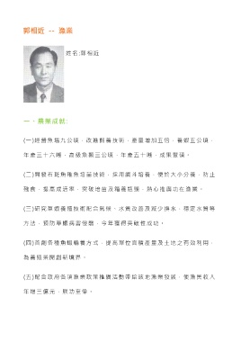 (一)經營魚塭九公頃,改進飼養技術,產量增加五倍,養蝦五公頃,