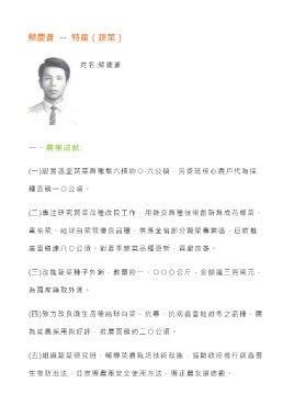 (二)專注研究蔬菜品種改良工作,用雜交育種技術創新育成花椰菜、