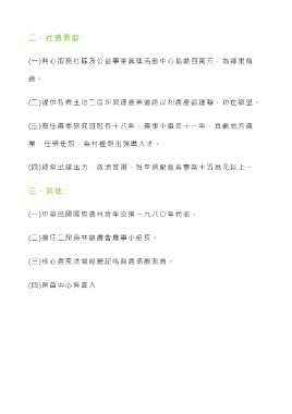 二、社會貢獻: (一)熱心服務社區及公益事業籌建活動中心捐獻四萬元,為鄰里稱 道 。 (二)提供私有土地二百坪興建產業道路以利農產品運輸,功在鄉里。 (三)擔任農事研究班班長十八年,農事小組長 十一年,貢獻地方農 業,任勞任怨,為村裡傑出領導人才。 (四)經常出錢出力,救濟貧困,每年捐獻慈善事業十五萬元以上。 三、其他: (一)中華民國國際農村青年交換一九八 ○年代表。 (二)擔任二屆員林鎮農會農事小組長。 (三)核心農家洪場經營記帳與農情觀測員。 (四)育苗中心負責人