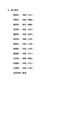 青年農民 簡維佐 -- 特產(花卉) . 李靜美 -- 特產(養豬) . 蕭榮泉 -- 畜牧(養豬) . 吳榮崇 -- 特產(花卉) . 羅慶城 -- 特產(蔬菜) . 陸桂森 -- 特產(水果) . 陳泰能 -- 特產(水果) . 鄧隆盛 -- 特產(水果) . 陳賢豐 -- 特產(花卉) . 洪堯東 -- 漁業(養殖) . 曹建國 -- 特產(花卉) . 余振喜 -- 特產(代耕) . 青年農民一覽表 .