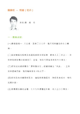 (一)農場面積一· 八公頃,溫室二 ○ ○ 坪,每月可育蘭苗約七 ○萬