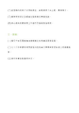 (二)設置鎮內清寒子女獎助學金,鼓勵農家子弟上進,嘉惠學子。 (三)舉辦學術研討及觀摩以提昇農民專業知識。 (四)熱心農業推廣教育工作擔任四健 義務指導員。 三、其他: (一)擔任中華民國養豬協會種豬改良推廣委員會委員。 (二)七十八年申請取得美國加州西海岸大學商業管理系碩士班繼續進 修 。 (三)接待外賓促進國民外交。
