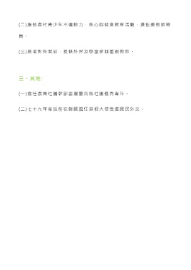 (二)服務農村青少年不遺餘力,熱心四健會教育活動,擔任義務指導 員 。 (三)農場對外開放,提供外界及學童參觀重視教育。 三、其他: (一)擔任農業社團幹部當選臺南縣社團優秀青年。 (二)七十九年奉派前往韓國擔任草根大使促進國民外交。