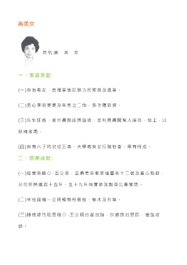 (一)身為長女,自懂事後即致力於家務及農事。