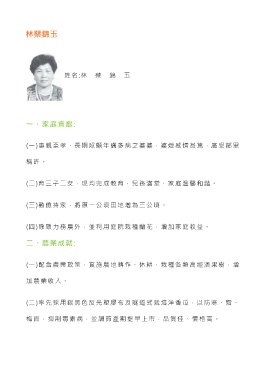 (一)事親至孝,長期照顧年邁多病之婆婆,婆媳感情甚篤,廣受鄰里